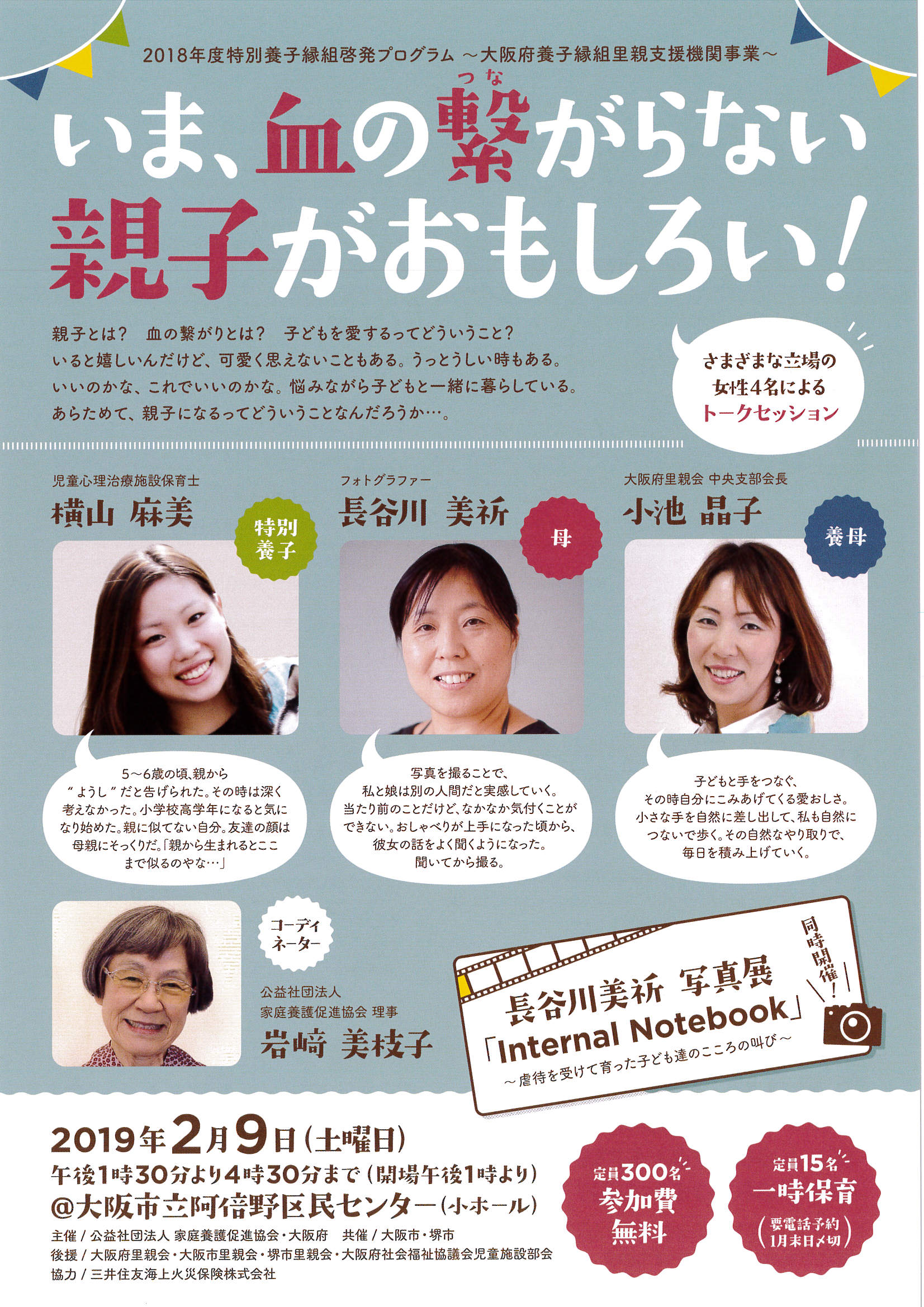 養親や養親希望者はもちろん、関係機関、一般の方にも、血縁を超えた親子の絆を感じてもらいたいと思っています。