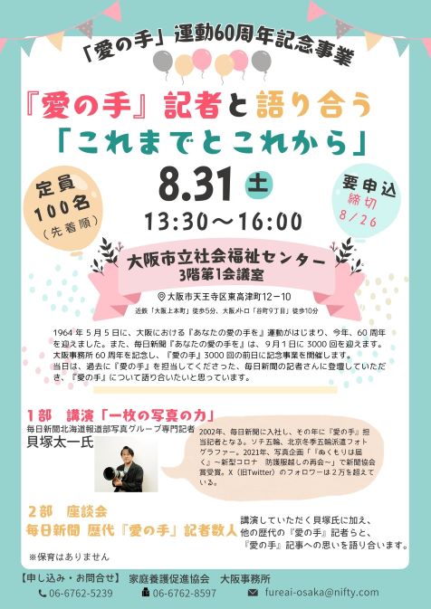 - 2024.8 【中止】「愛の手」運動60周年記念事業『愛の手』記者と語り合う「これまでとこれから」