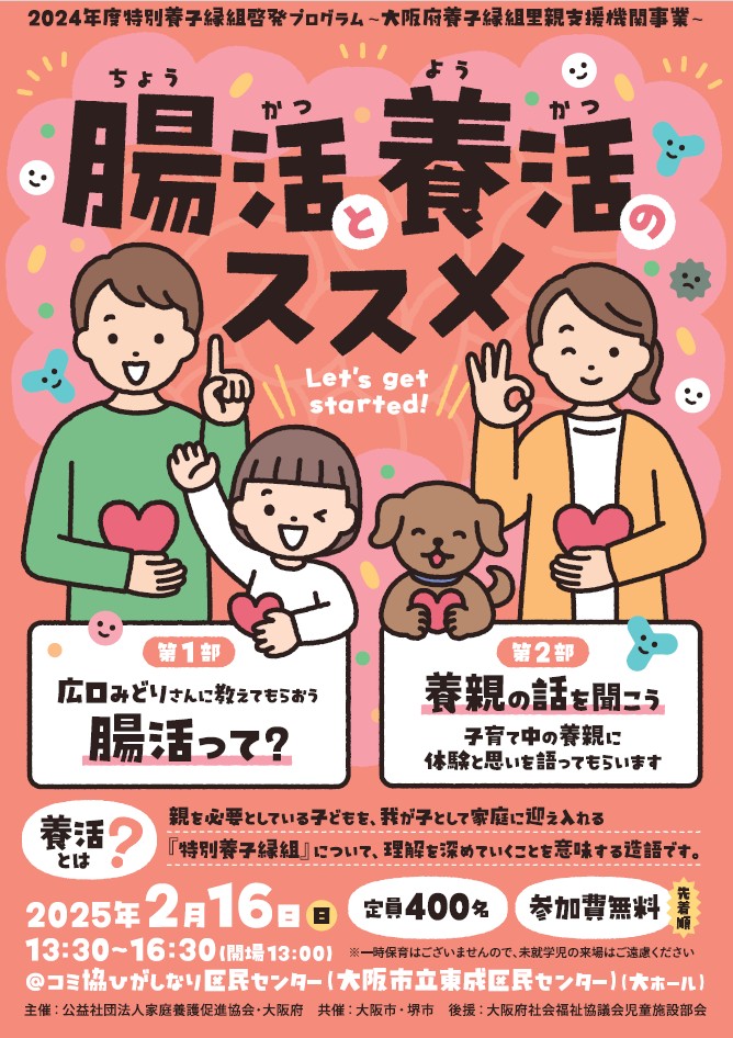*電話、FAX、メールのいずれかでお申し込みください。 - 2025.1 特別養子縁組啓発プログラム「腸活と養活のススメ」(終了しました)